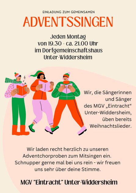 Natürlich freuen wir uns auch immer über neue Sängerinnen und Sänger. Wir proben jeden Montag im DGH in Unter-Widdersheim ab 19:30 Uhr.